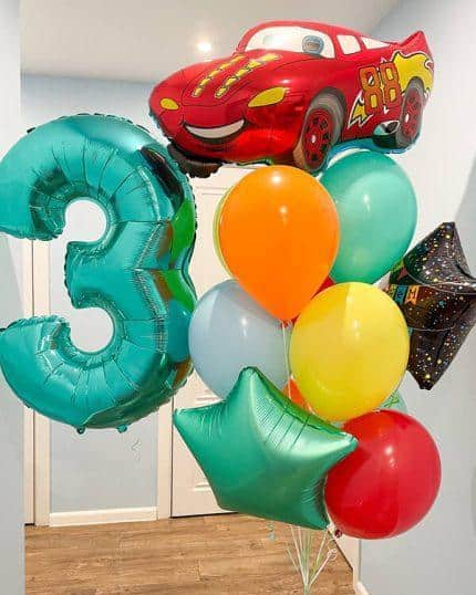 Особенно интересно выглядят композиции из воздушных шаров, созданные в форме машин из Тачек. Можно сделать например гоночный трек, используя шары разных цветов, или создать группу из нескольких шаров, которые вместе образуют машину. Также можно сделать шары в форме номерных знаков, на которых будет написано имя именинника или другая нужная надпись.